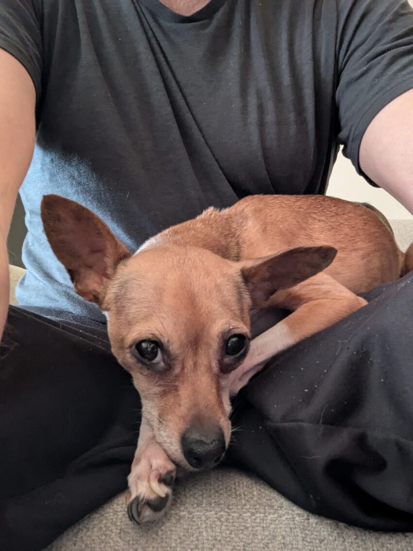 My girlfriend and I have welcomed this sweet one into our home while we look for her people. Please let us know of any additional info you might need/how we can continue to spread the word!