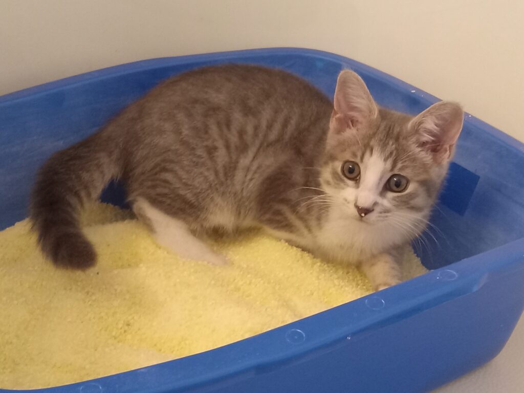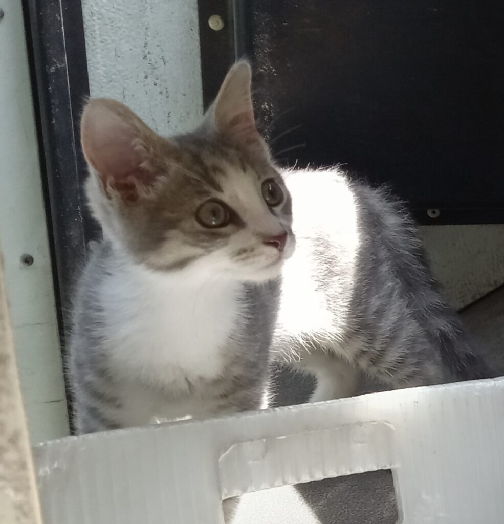 I'm reporting a kitten found today, 6/7, near the Allen Jay Recreation Center in Archdale. He is male, gray and white shorthair tabby, I'd guess around 9 or 10 weeks old. He appears healthy and very well-socialized; surely someone was taking care of him? I'm taking him tomorrow to scan for a microchip but he had no collar.