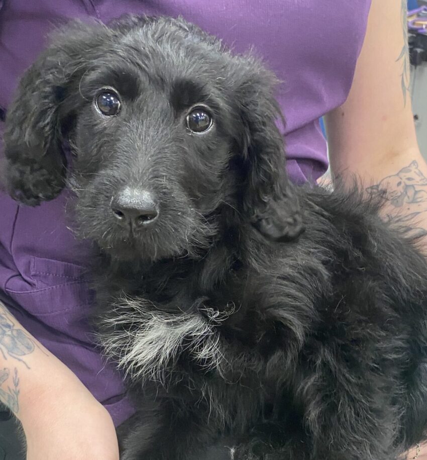 FOUND - Lab/Poodle Mix, age 4-6 months.  Black with white spot on chest and on front left foot.  Found on Spring Garden Road, parking lot of Wet Dog Glass