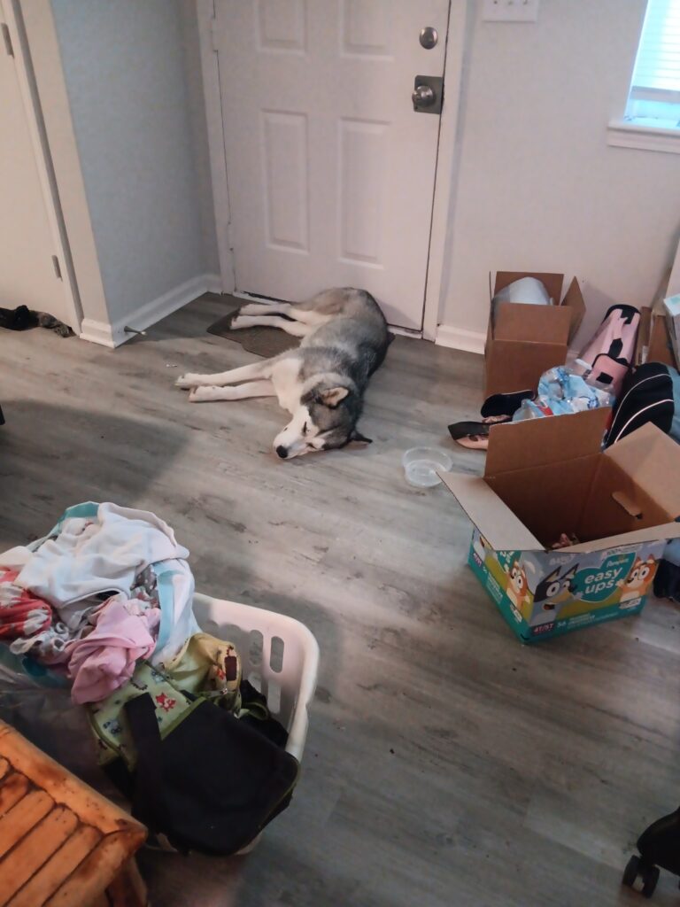 Siberian Husky dog on South Holden RD in front of Foodlion next to west Vandalia rd
