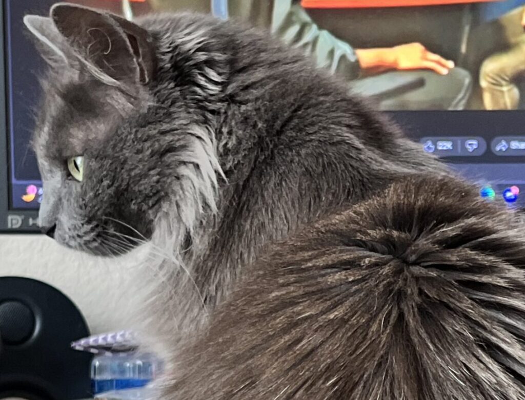 Gray, long hair with mane